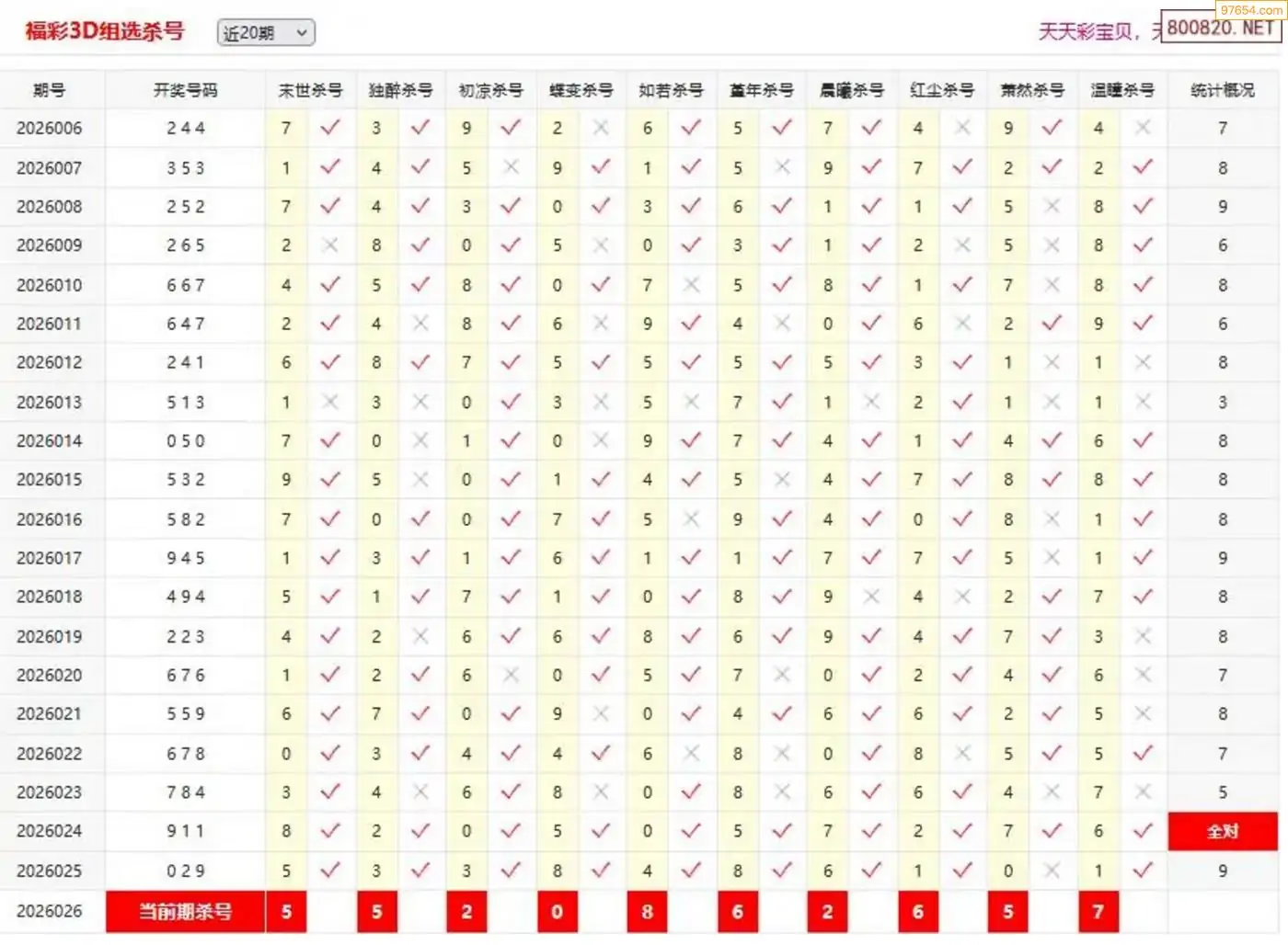 福彩3D盐都杂谈26年026期杀码猜想 8连中