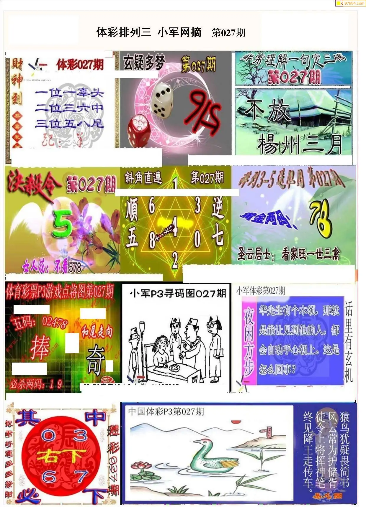 2026027期彩友图迷汇总_排列三图迷总汇全图