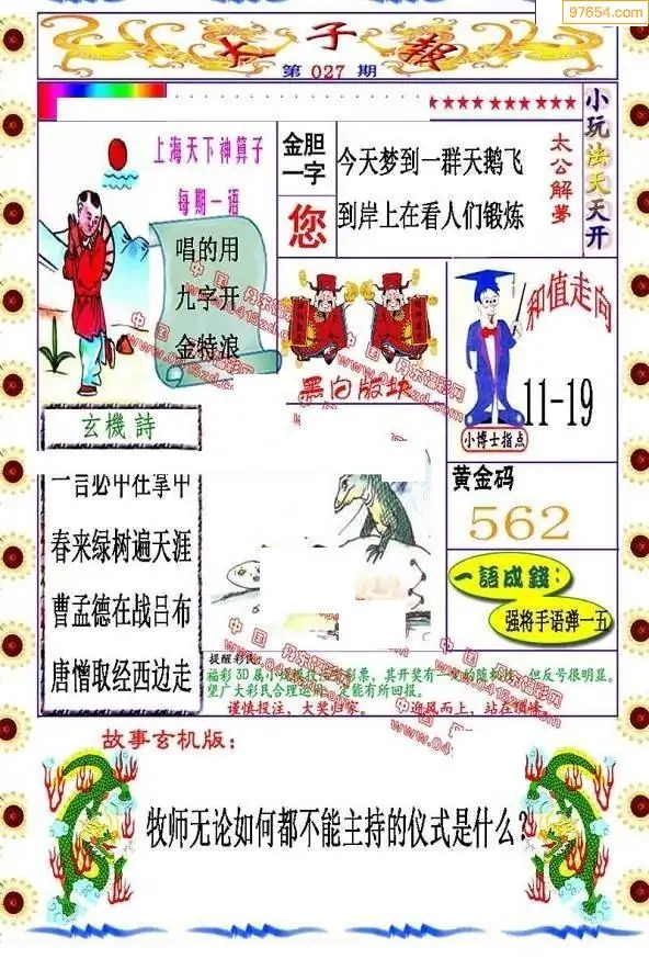 027期福彩太子报红五图库