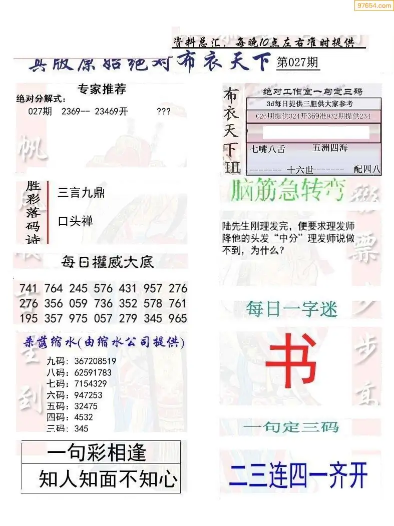 26027期真精华布衣123456(晚间报)