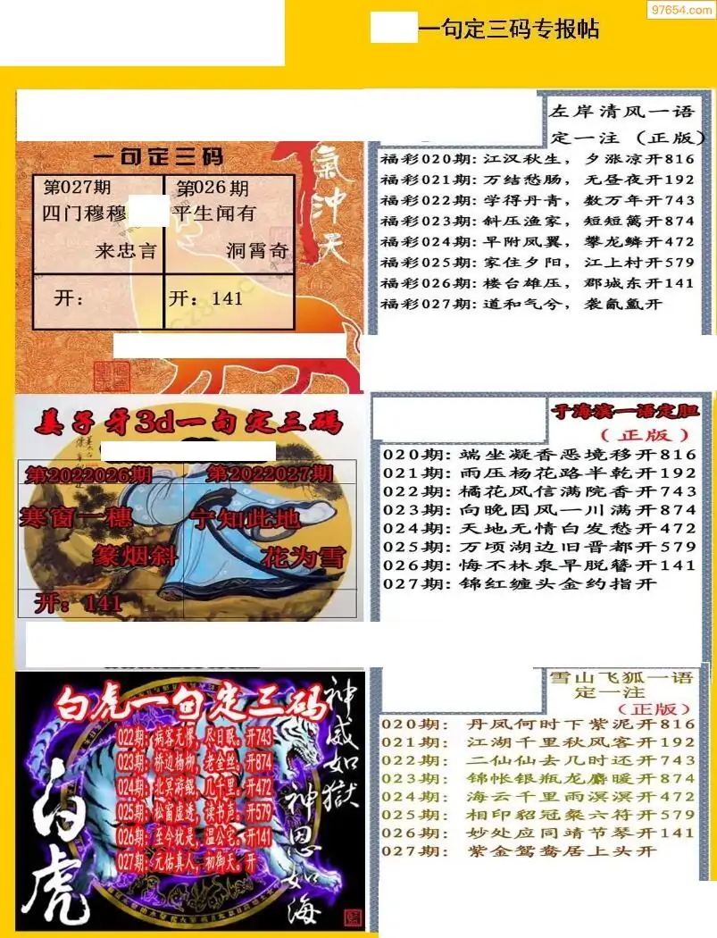 26027期天宇一句定三码3D图库