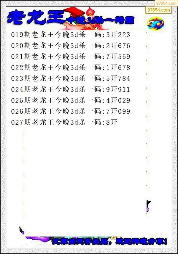 牛彩网027期福彩杀码图汇总 杀:69