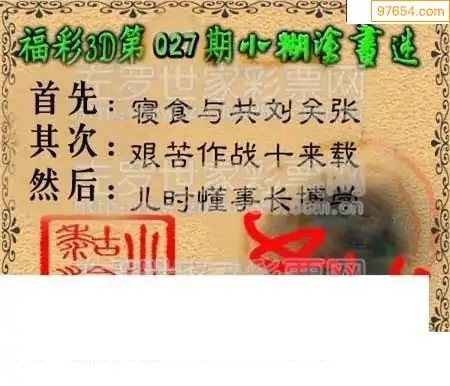 (3)2026027期3D预测总汇全图_福彩3d图谜字谜总汇