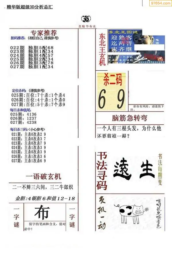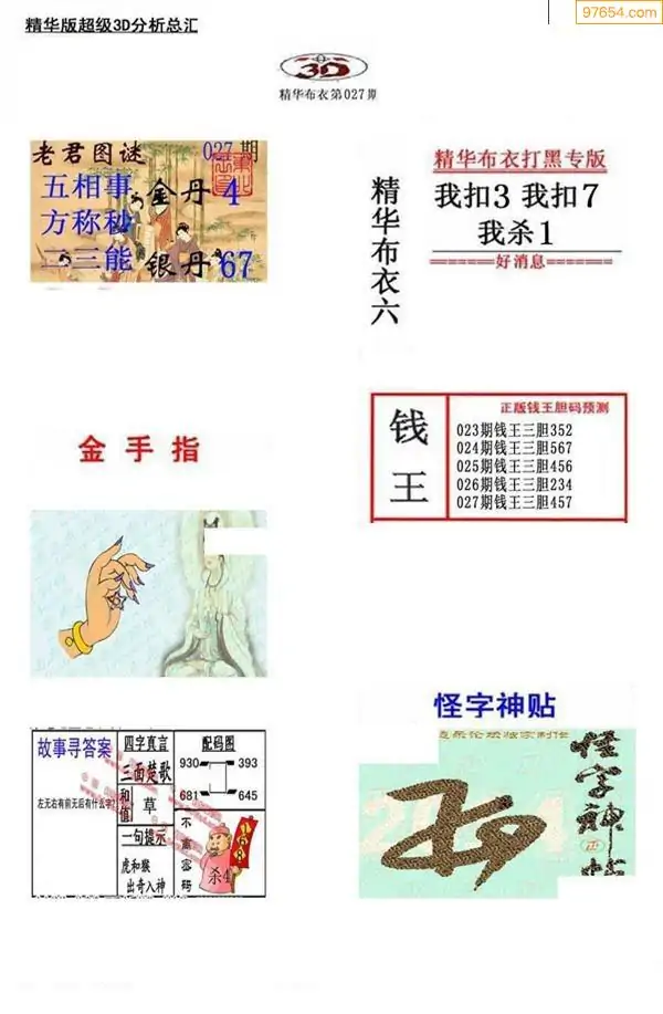 (3)2026027期3D预测总汇全图_福彩3d图谜字谜总汇