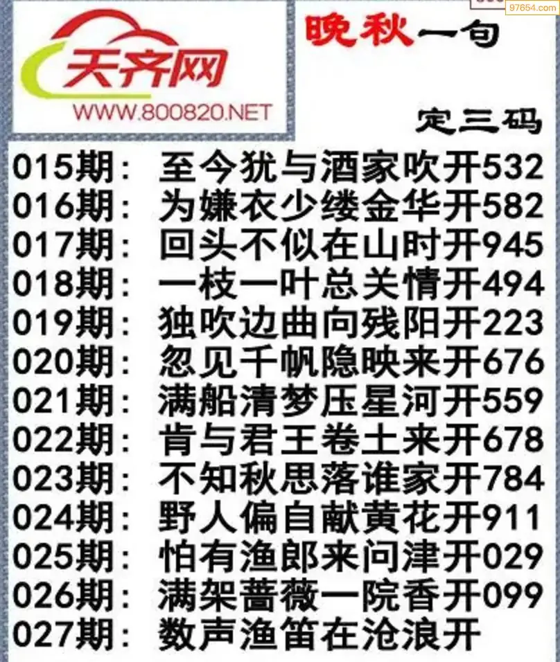 027期3d福彩今日晚秋字谜一句定三码