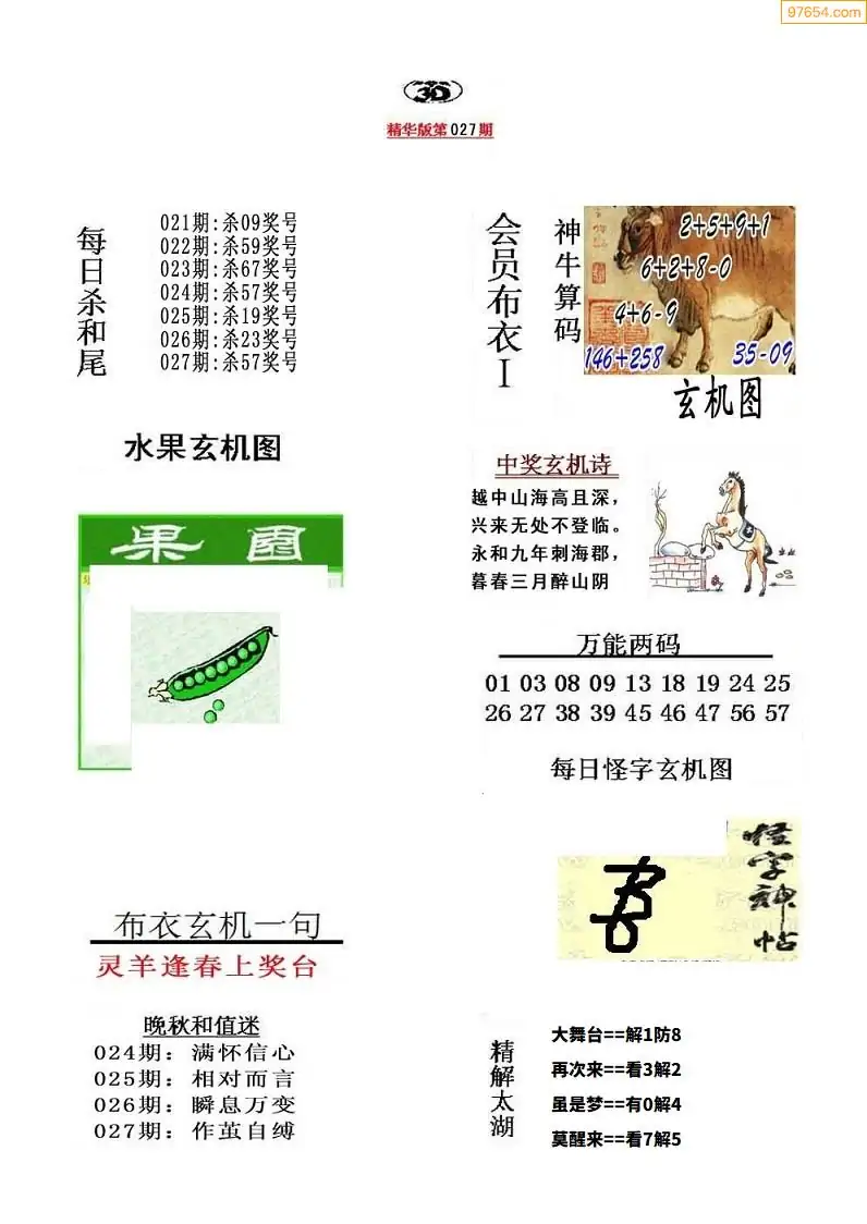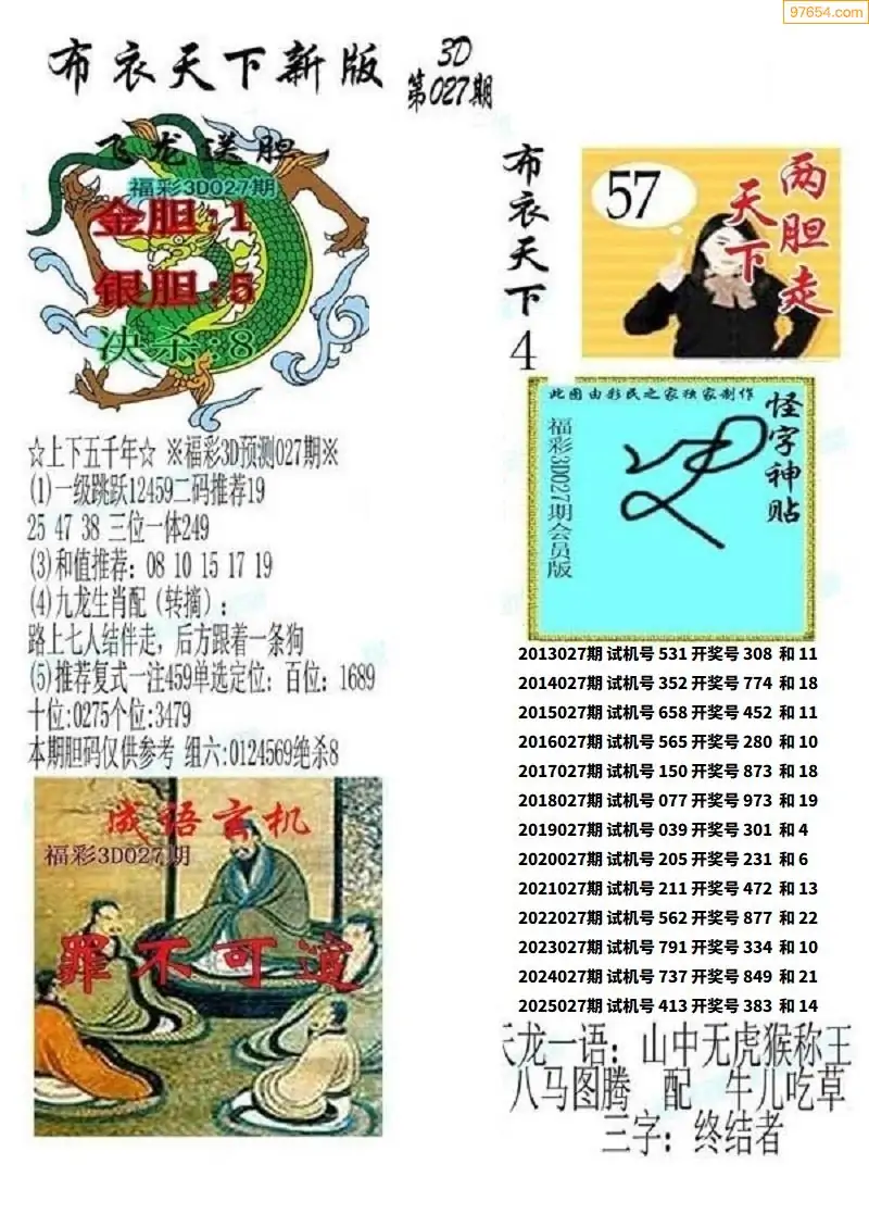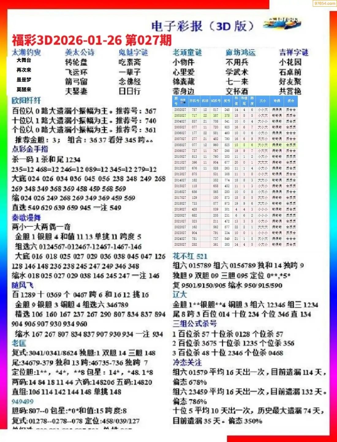 (2)26年027期本期3d图迷汇总_福彩3D图谜总汇图