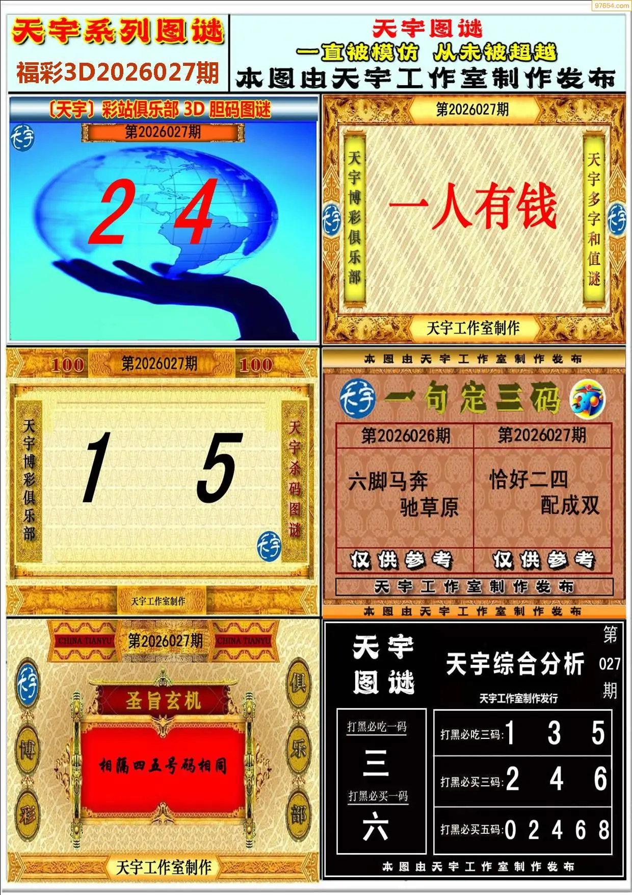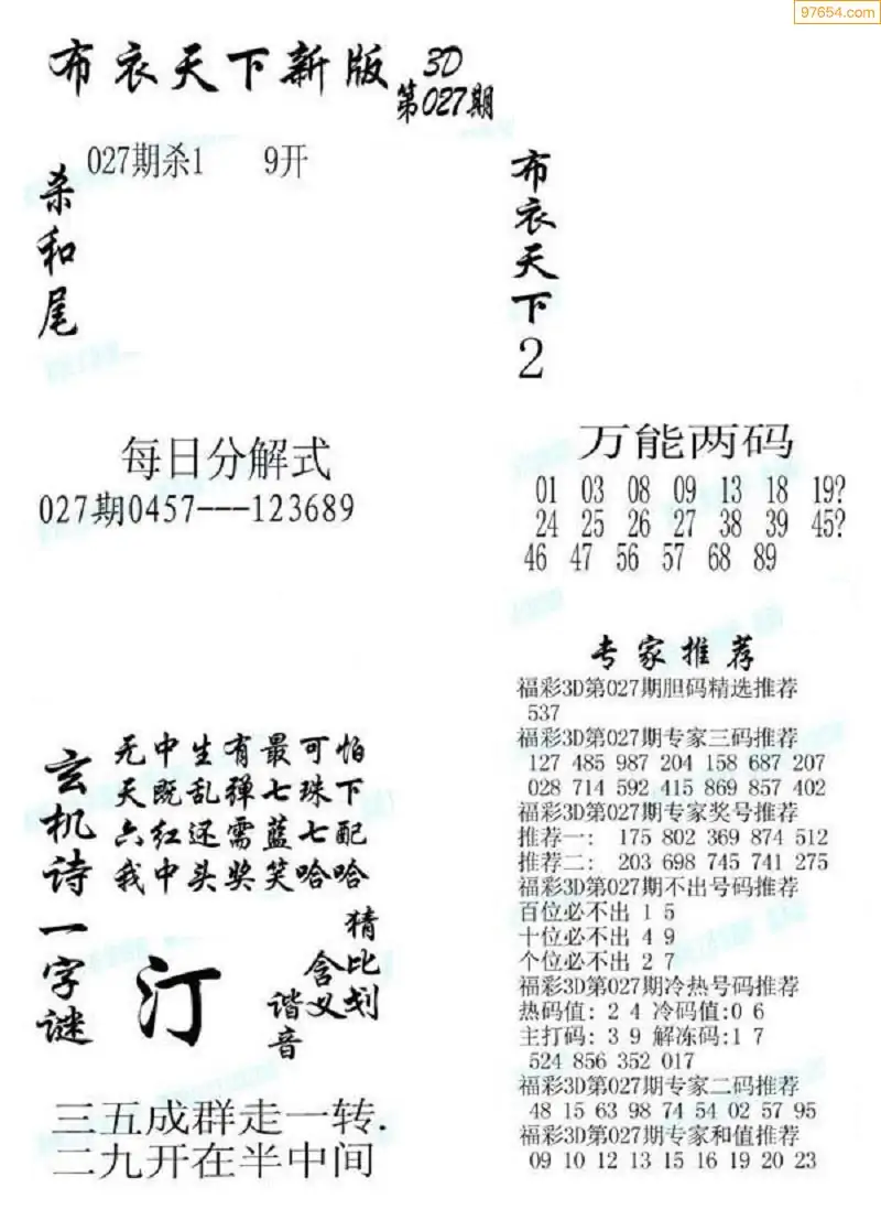 (3)2026027期3D预测总汇全图_福彩3d图谜字谜总汇