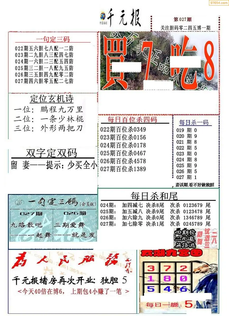 (9)26年026期当期全站杀号定胆图