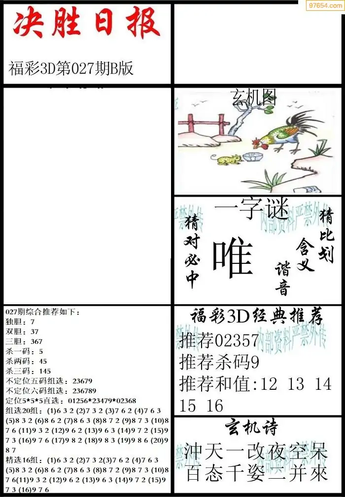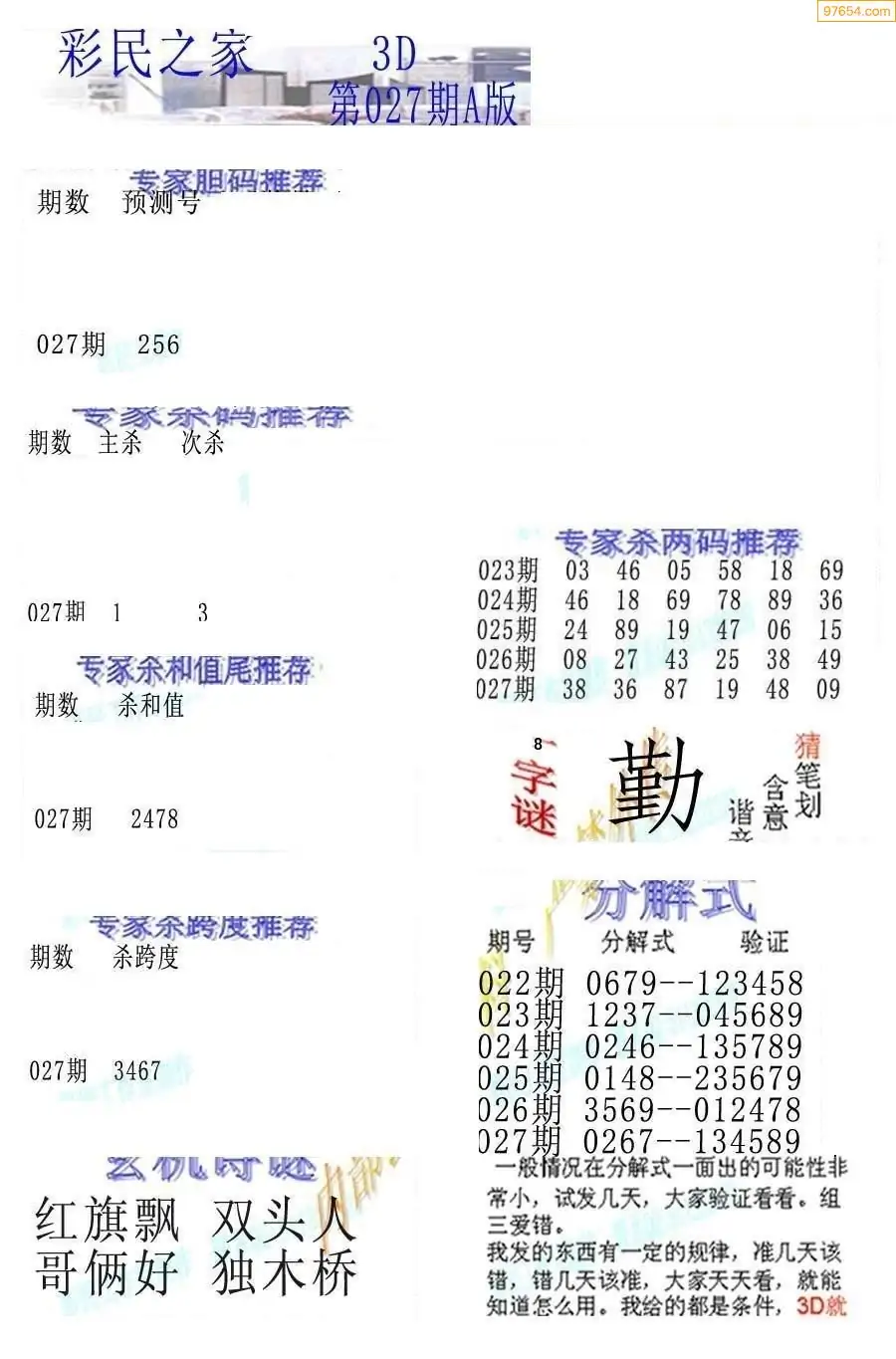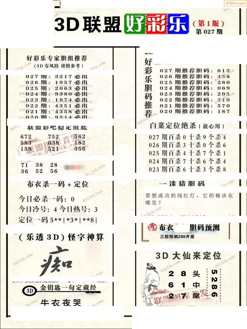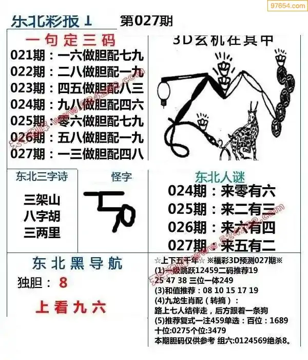 (3)2026027期3D预测总汇全图_福彩3d图谜字谜总汇
