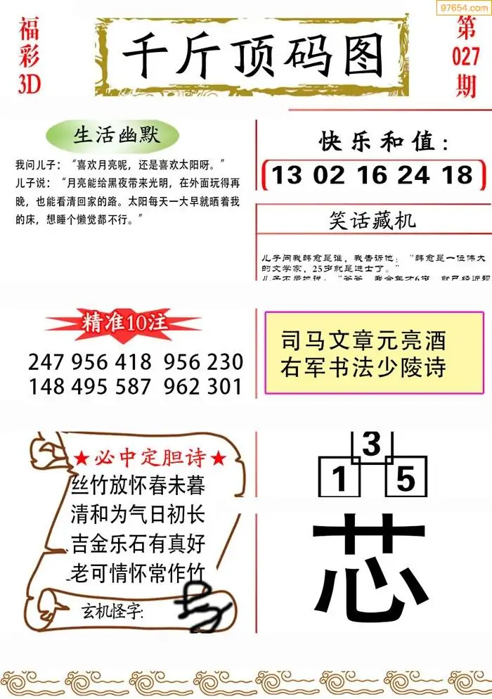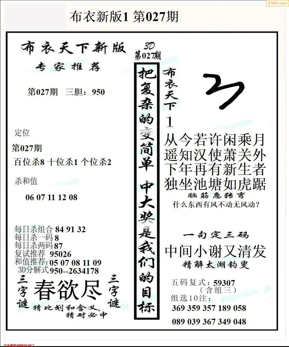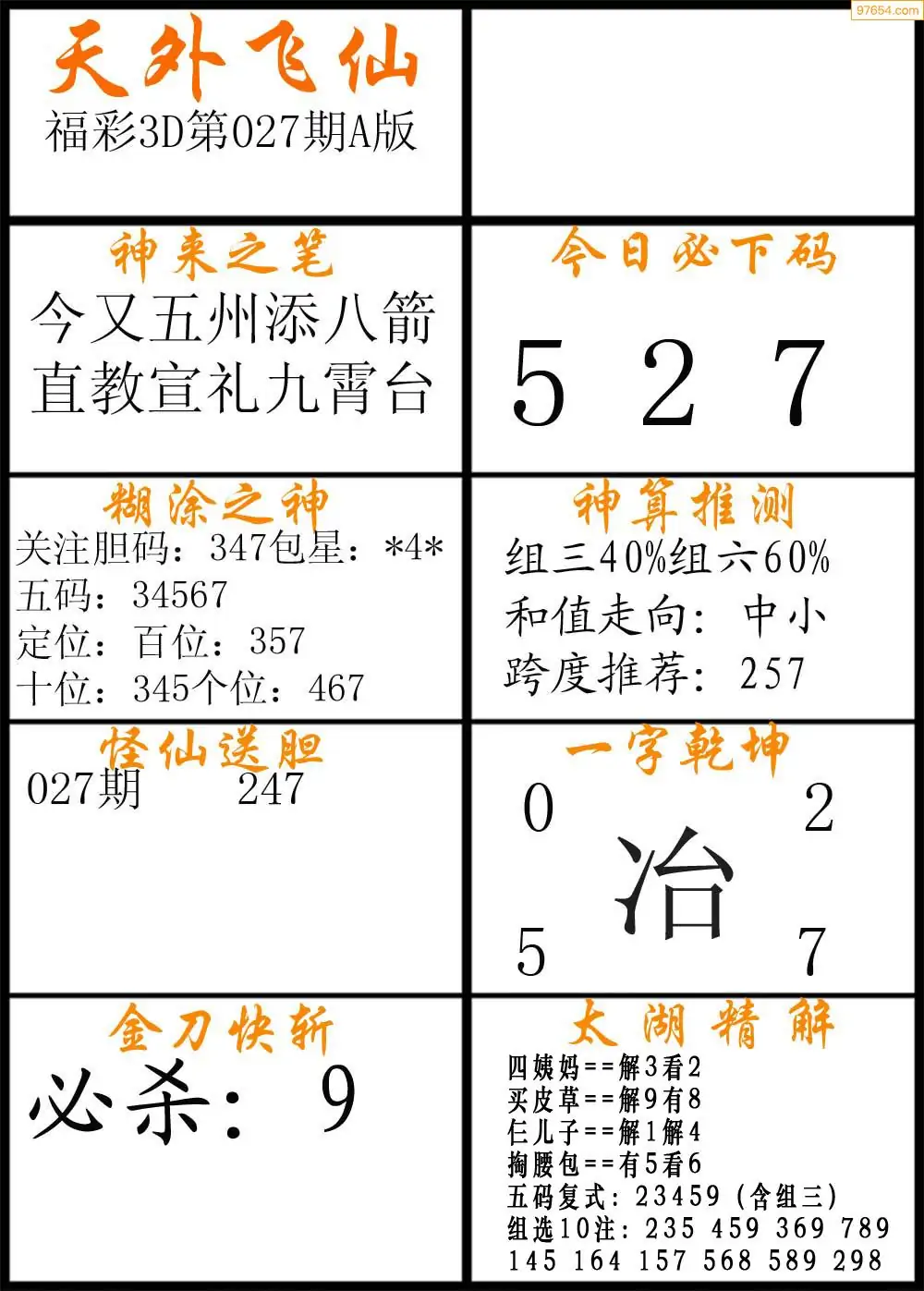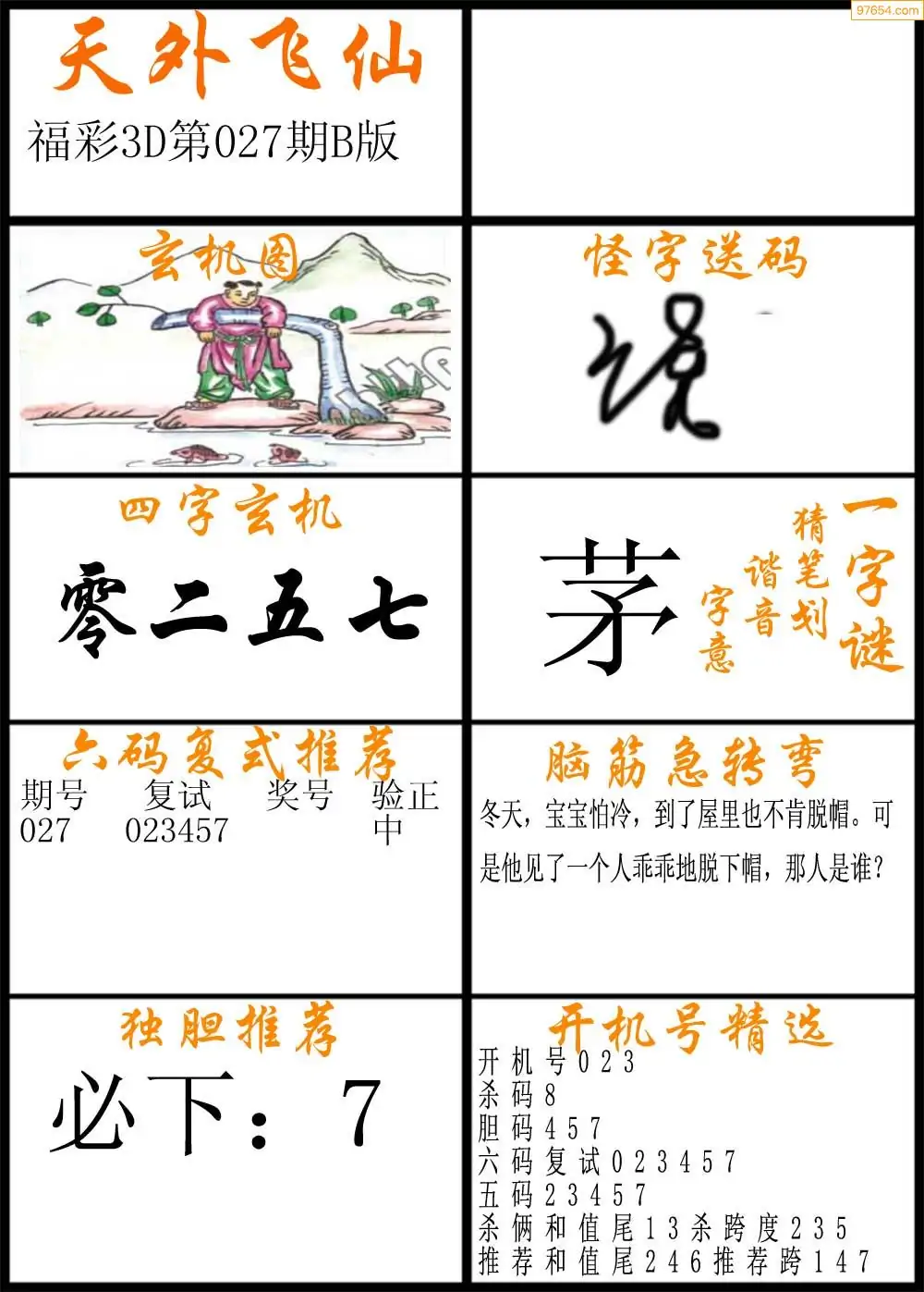 (3)2026027期3D预测总汇全图_福彩3d图谜字谜总汇