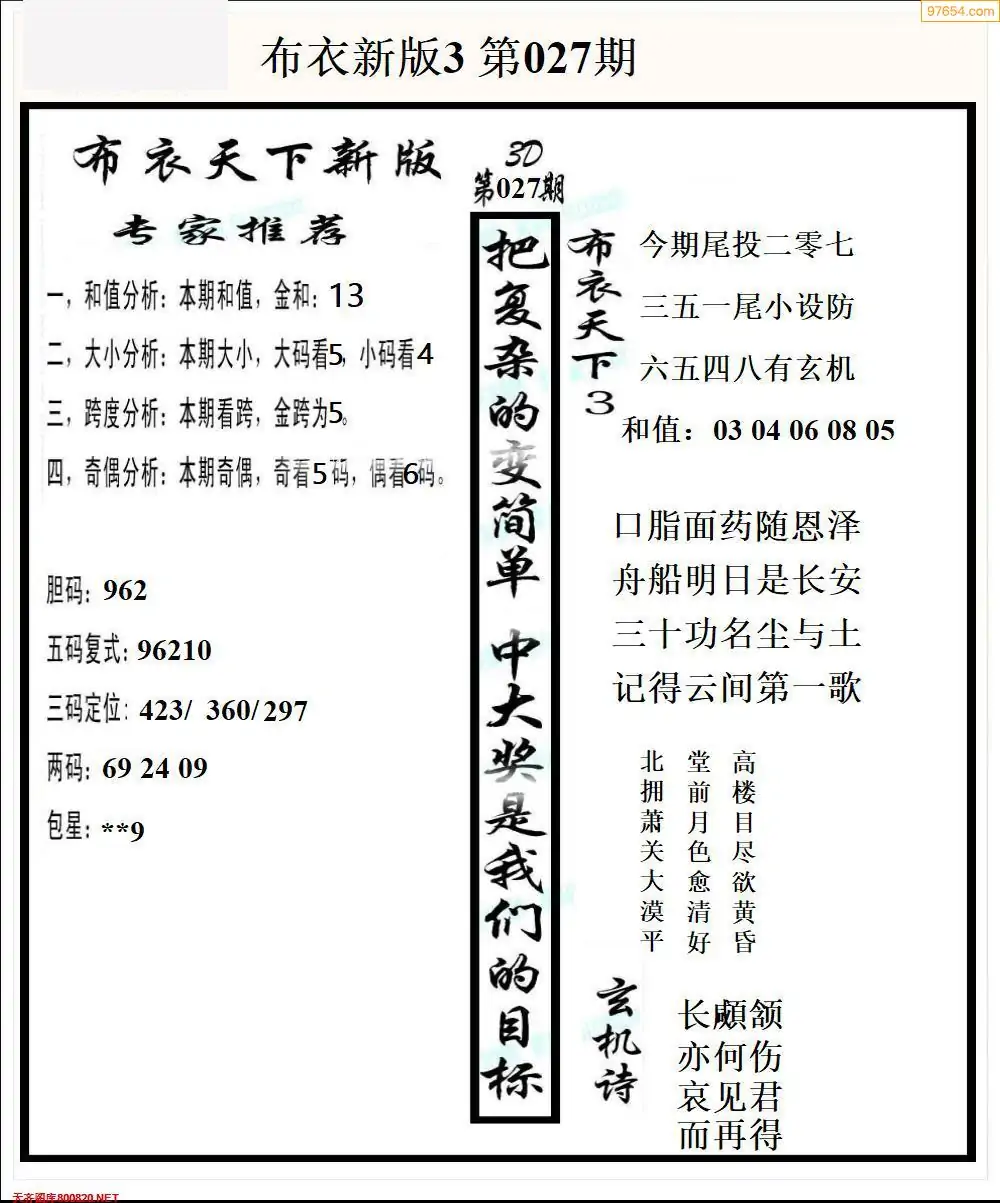 (8)26年027期今日3d各类彩报汇总