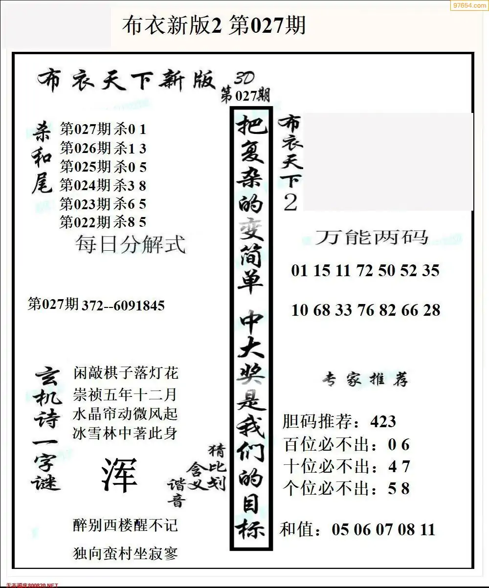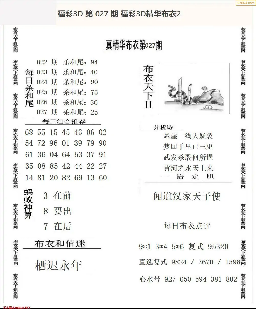 (2)26年027期本期3d图迷汇总_福彩3D图谜总汇图