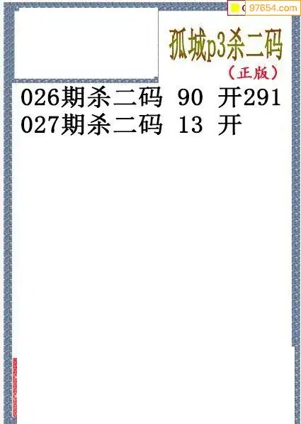 26年027期孤城本期杀码排3图谜