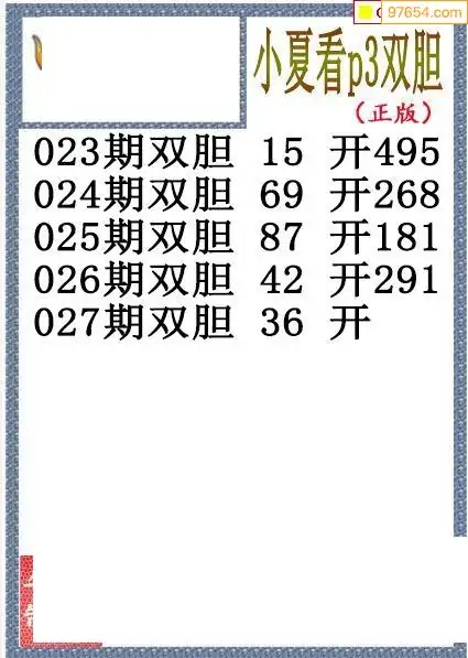 26027期小夏双胆体彩P3图谜