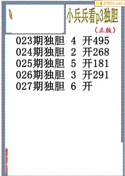 26027期小兵兵今日P3独胆图迷