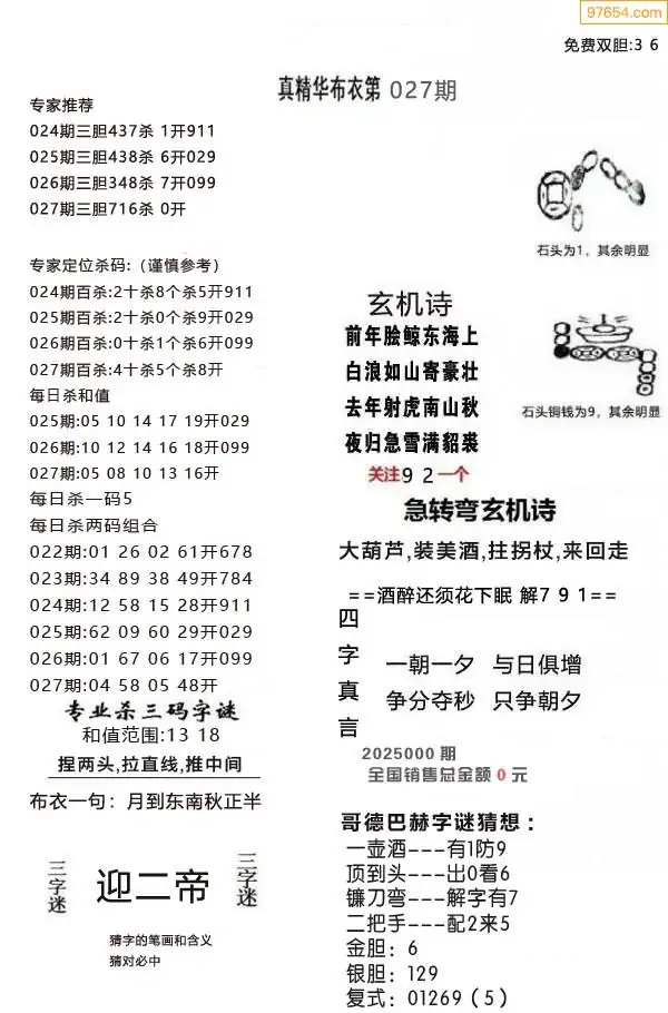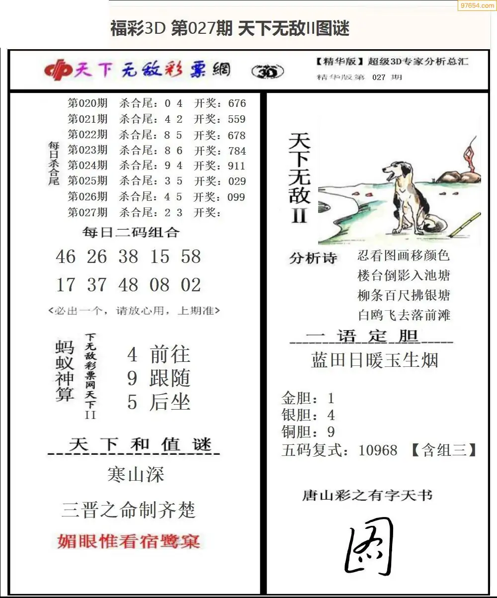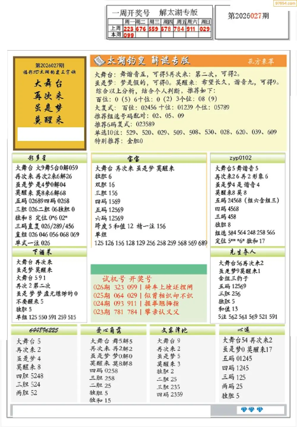 (2)26年027期本期3d图迷汇总_福彩3D图谜总汇图