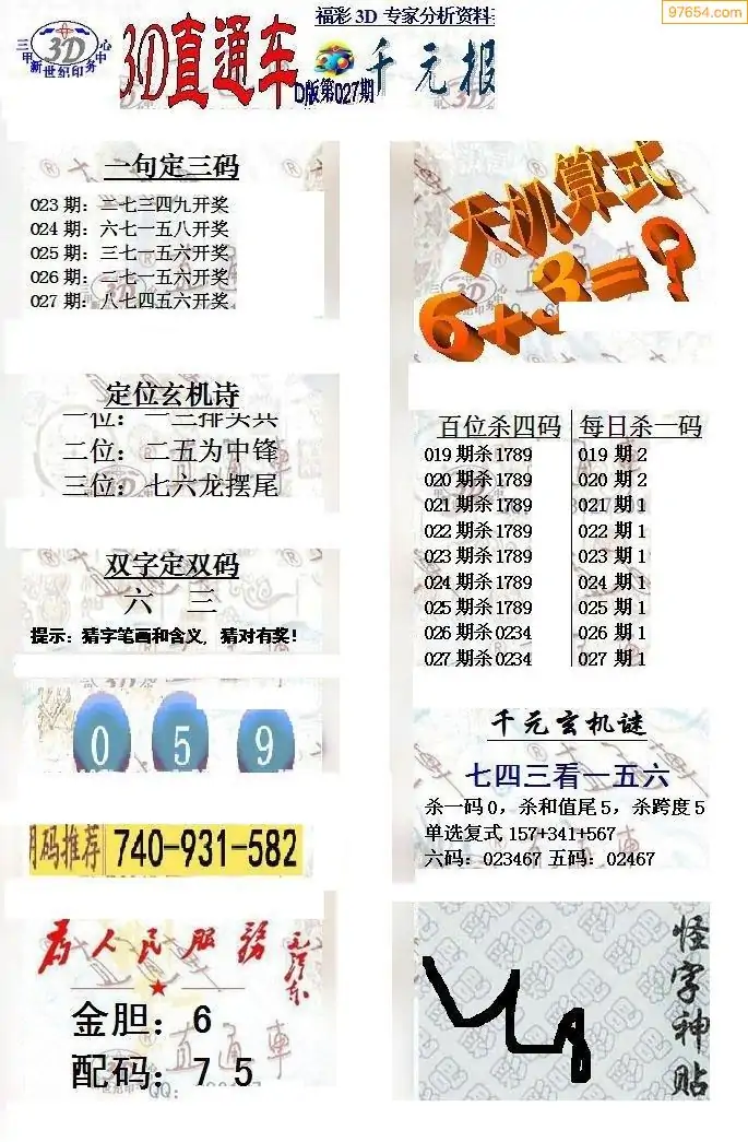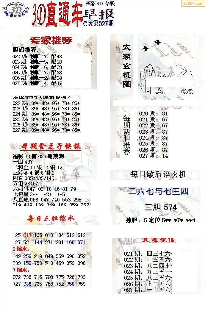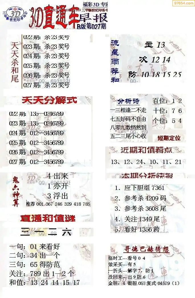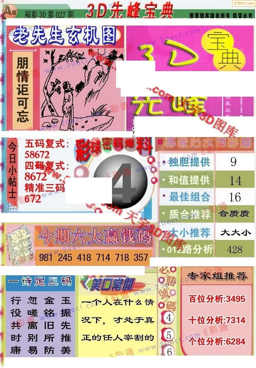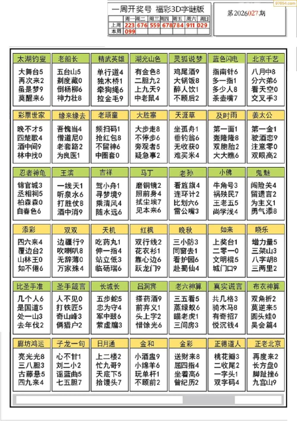 (3)2026027期3D预测总汇全图_福彩3d图谜字谜总汇