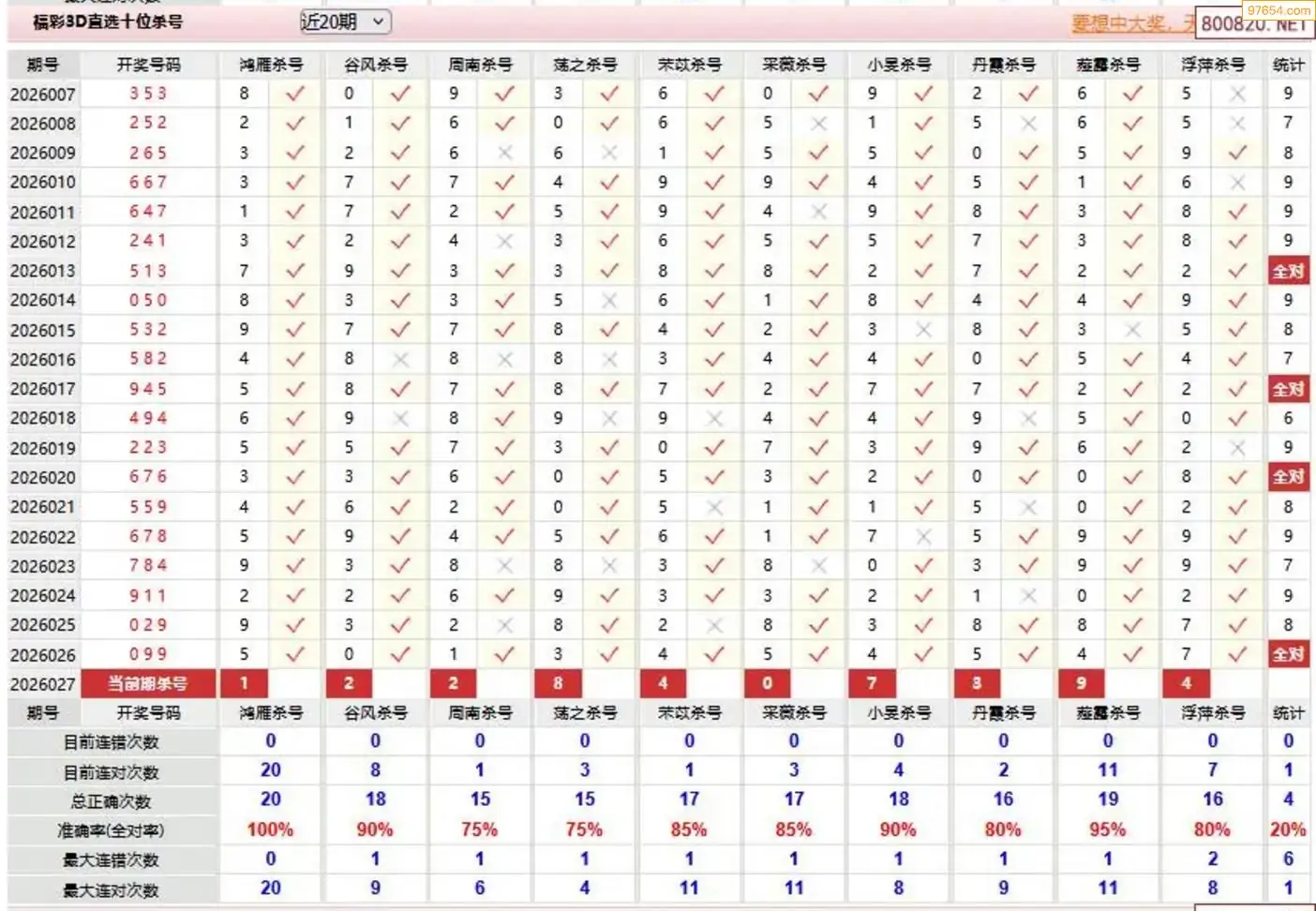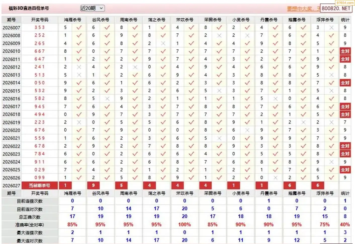 福彩3d26年027期赤焰虎杀两码 11连中