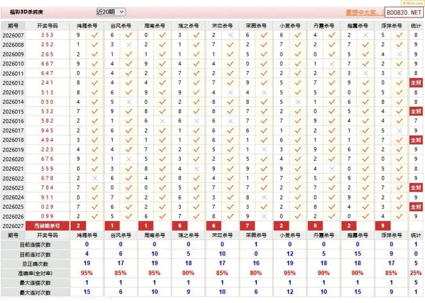 福彩3D盐都杂谈26年027期杀码猜想 9连中