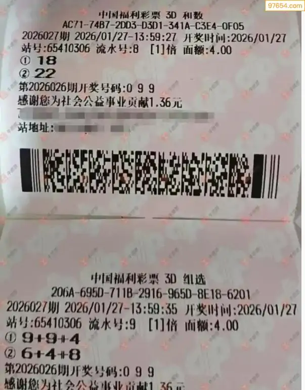 26027期福彩3d今天彩民晒票