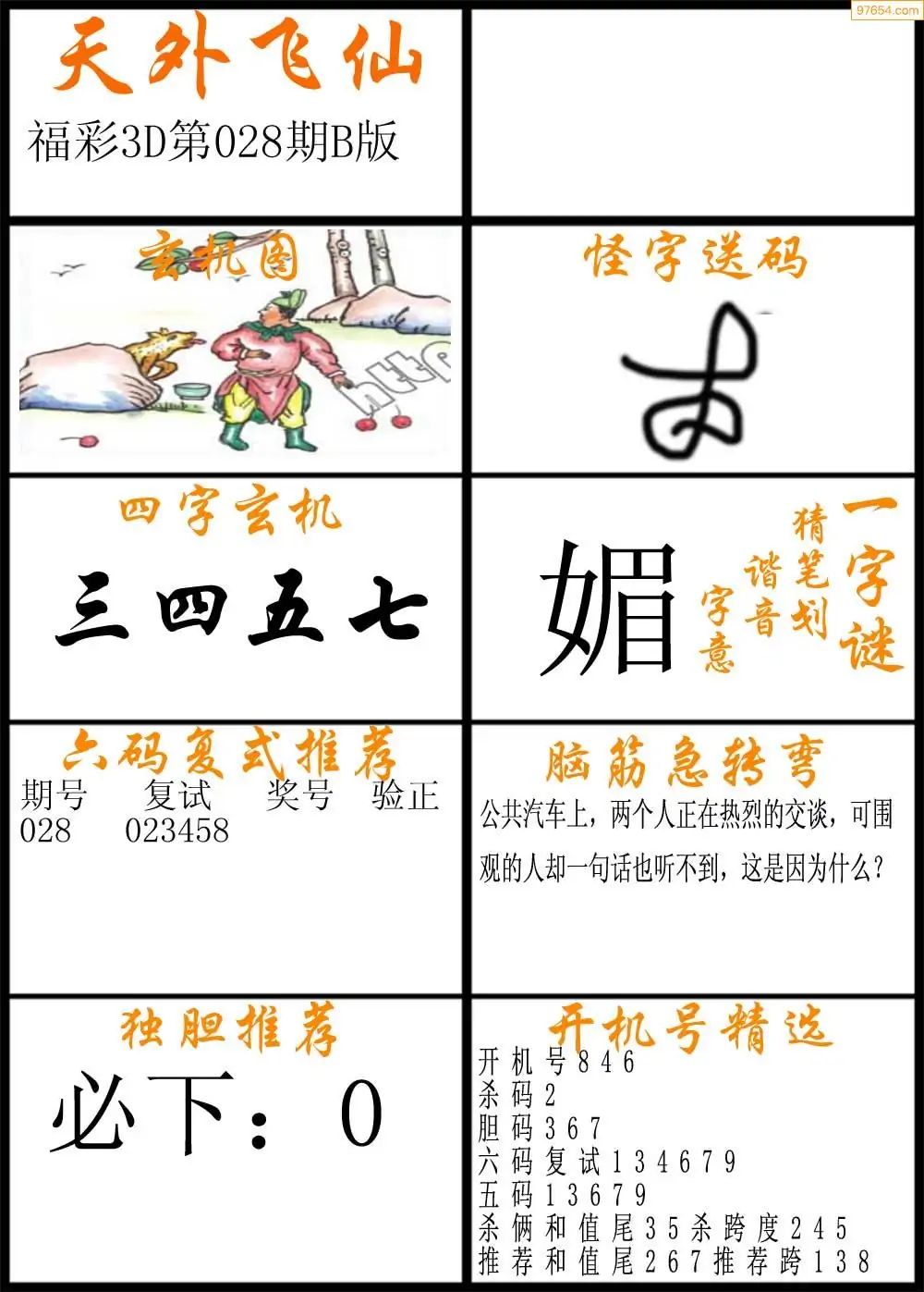 028期福彩3d天外飞仙B版