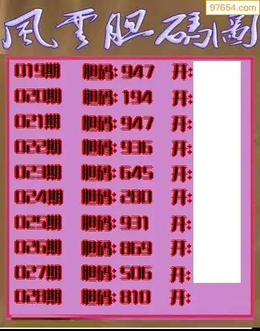 028期97654本站收集胆码出号预测