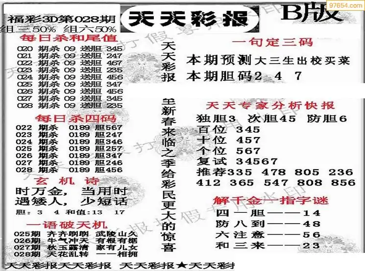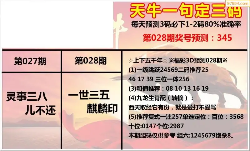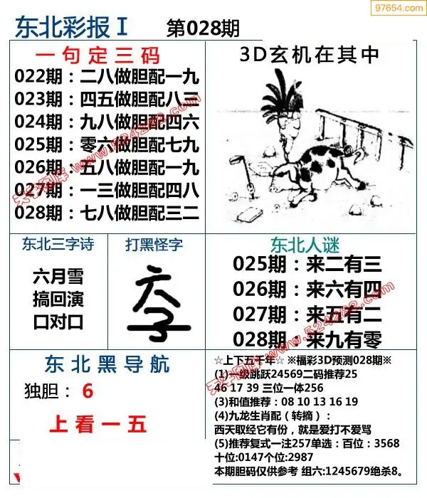 福彩3D028期天牛彩吧套图整合总汇