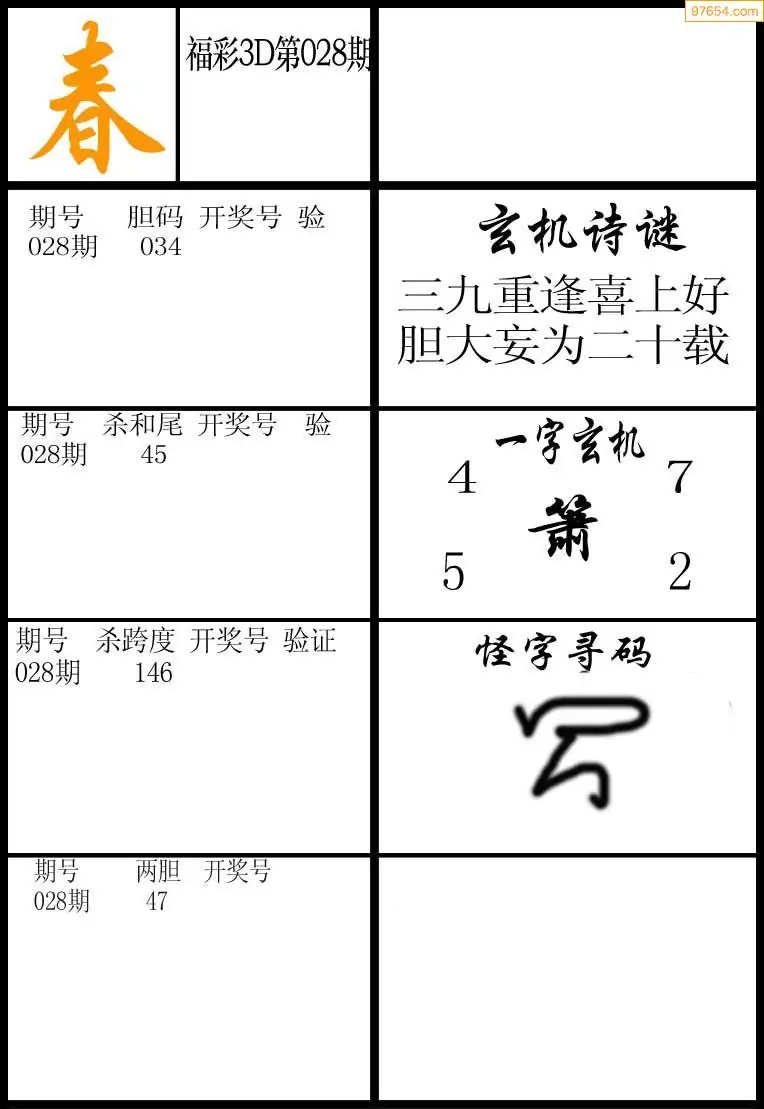 028期福彩天机壁怪字图
