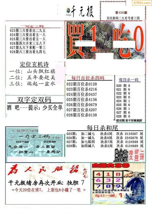 (9)26年027期当期全站杀号定胆图