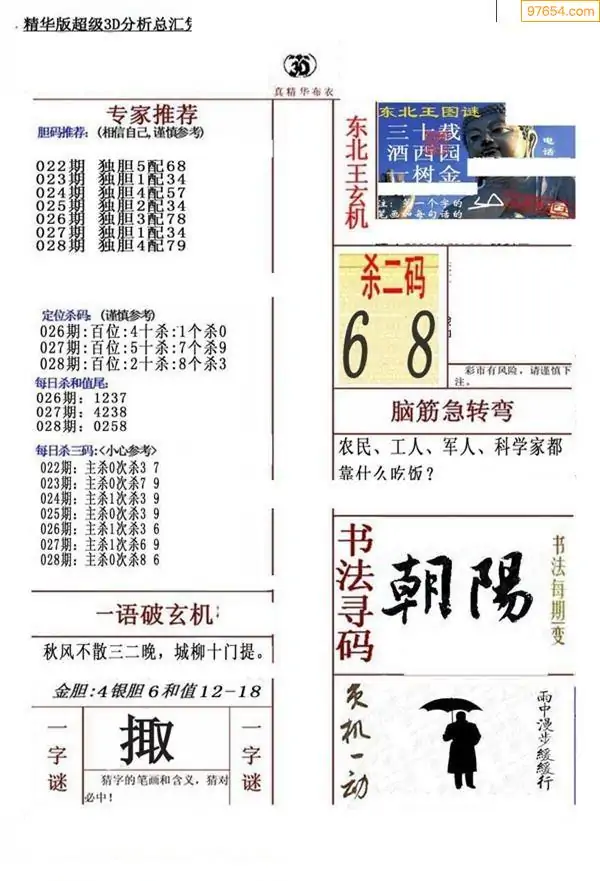 (3)2026028期3D预测总汇全图_福彩3d图谜字谜总汇