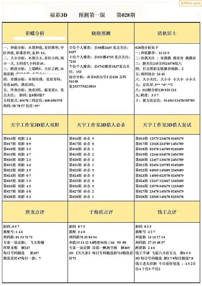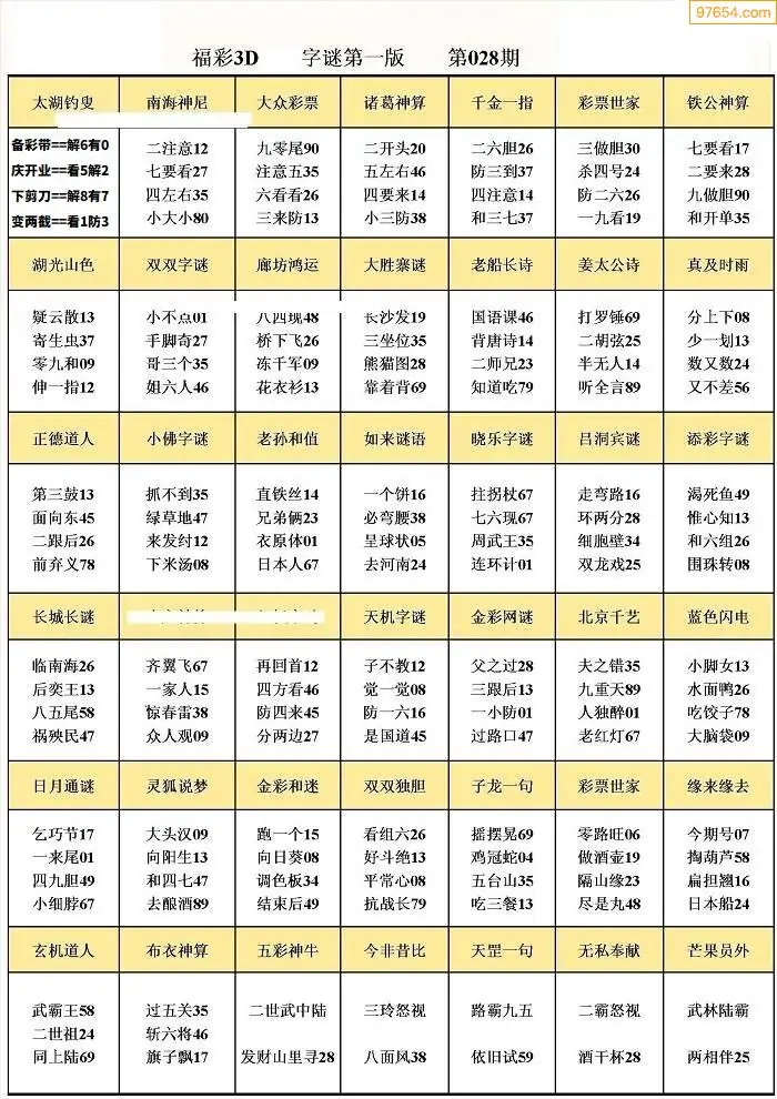 028期3D牛彩预测报+彩吧字谜报