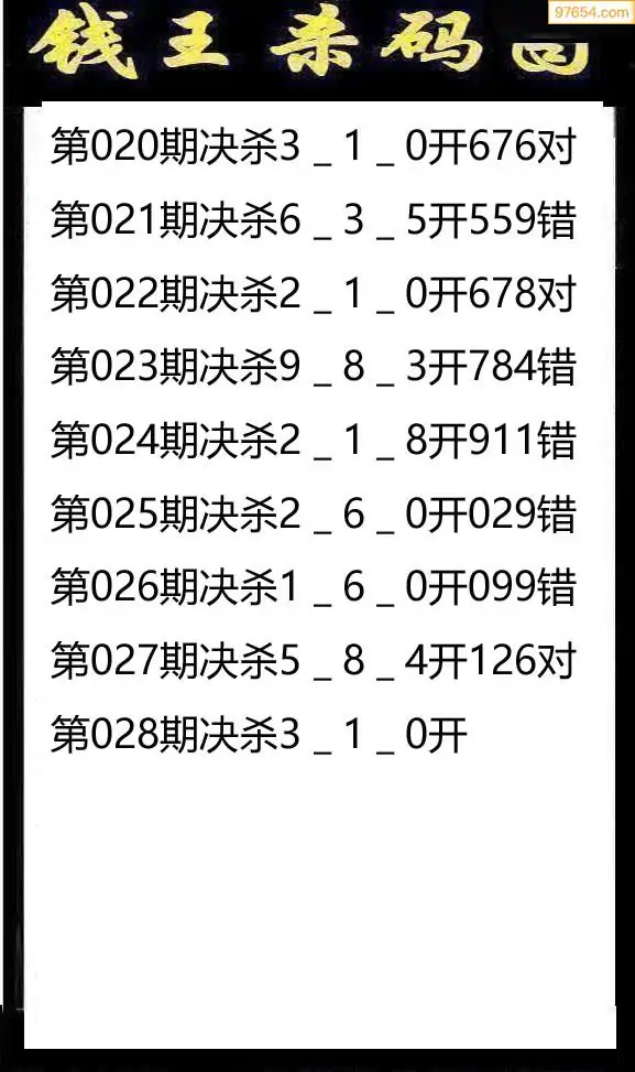 028期97654本站收集杀码出号预测