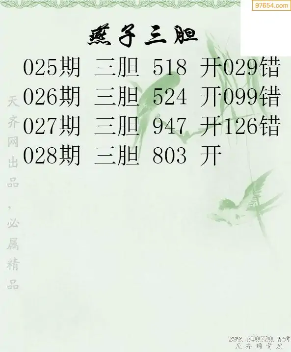 028期97654本站收集胆码出号预测