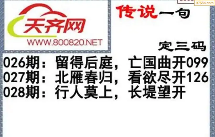 福彩3d26年028期字谜传说一句定三码