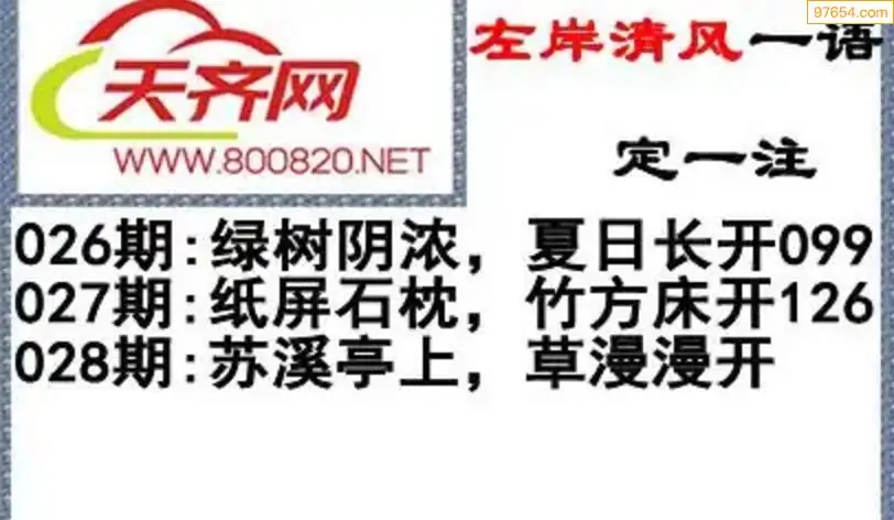 福彩3d左岸清风26年028期一语定一注