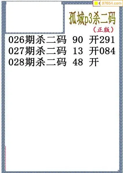 26年028期孤城本期杀码排3图谜