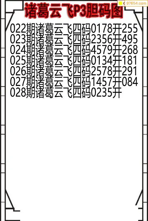 26028期诸葛云飞今期P3胆码图