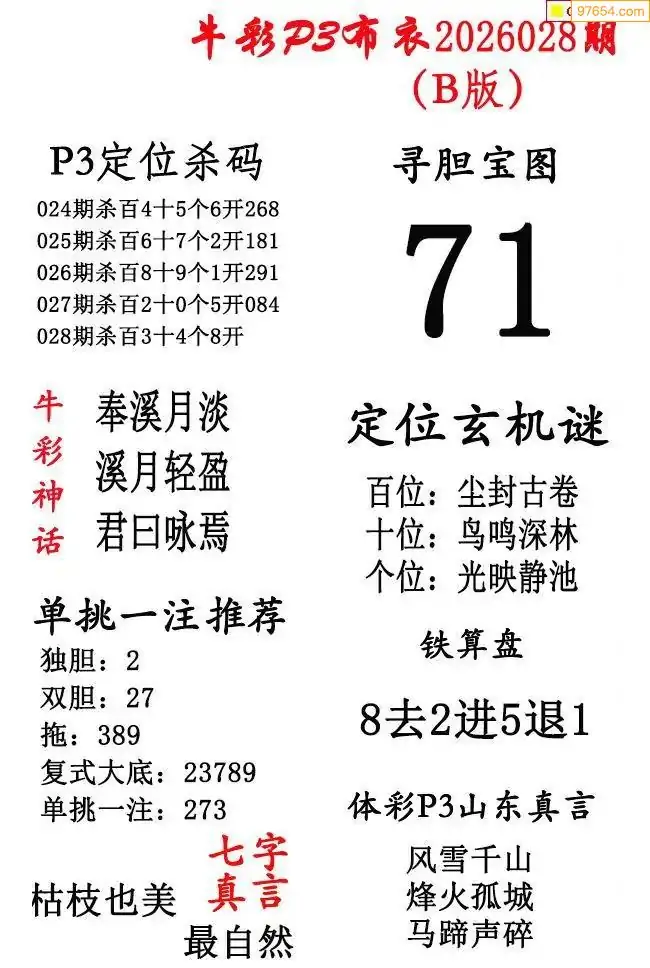 2026年028期北盟天机图+p3仙机图谜 _p3图谜汇总看点