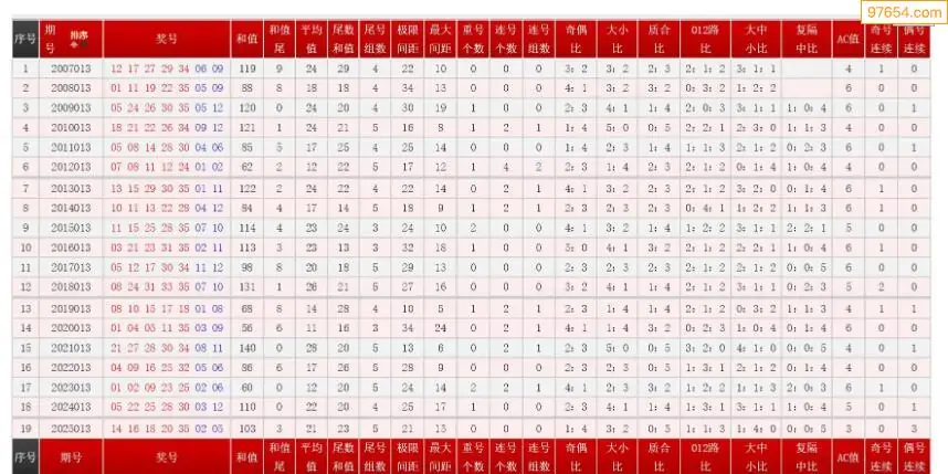 013期大乐透历史同期图表+走势图