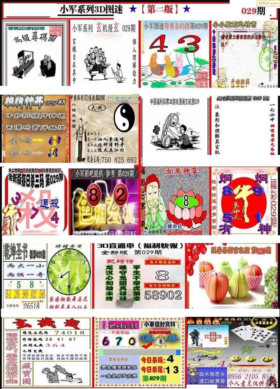 029期3D牛彩预测报+彩吧字谜报