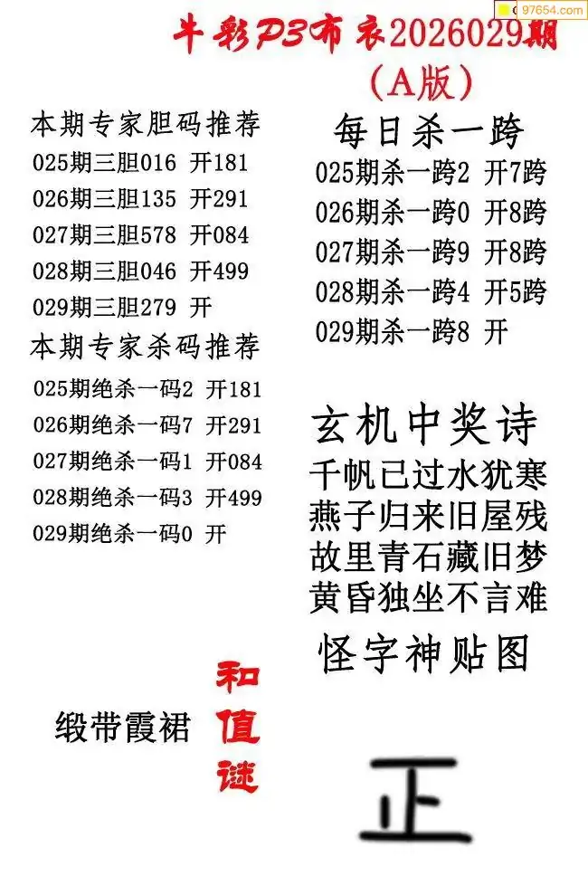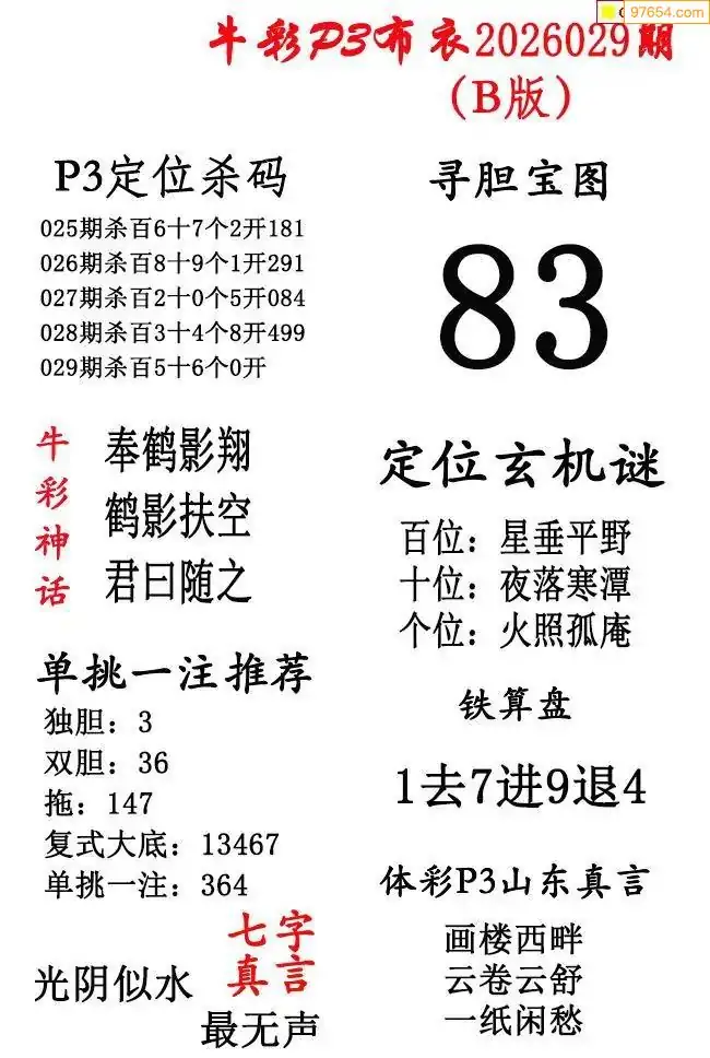 2026年029期北盟天机图+p3仙机图谜 _p3图谜汇总看点