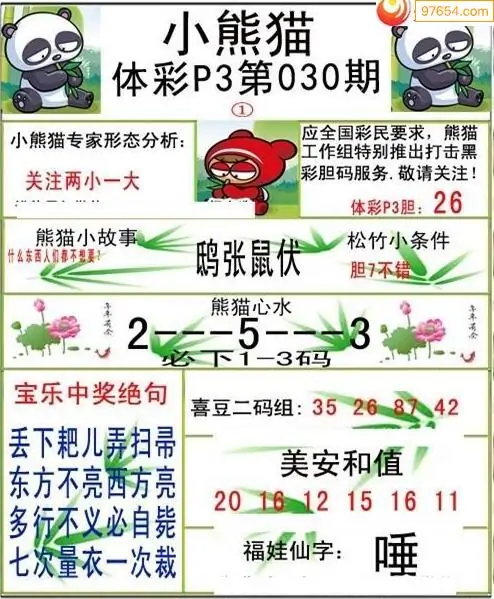 26年天吉体彩P3玄机怪字030期图迷