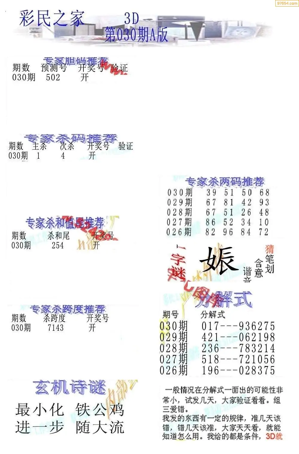26030期3D彩民各类资料A版
