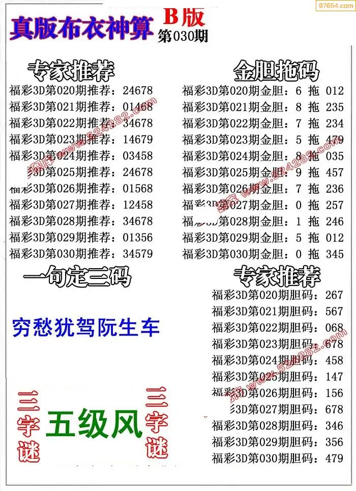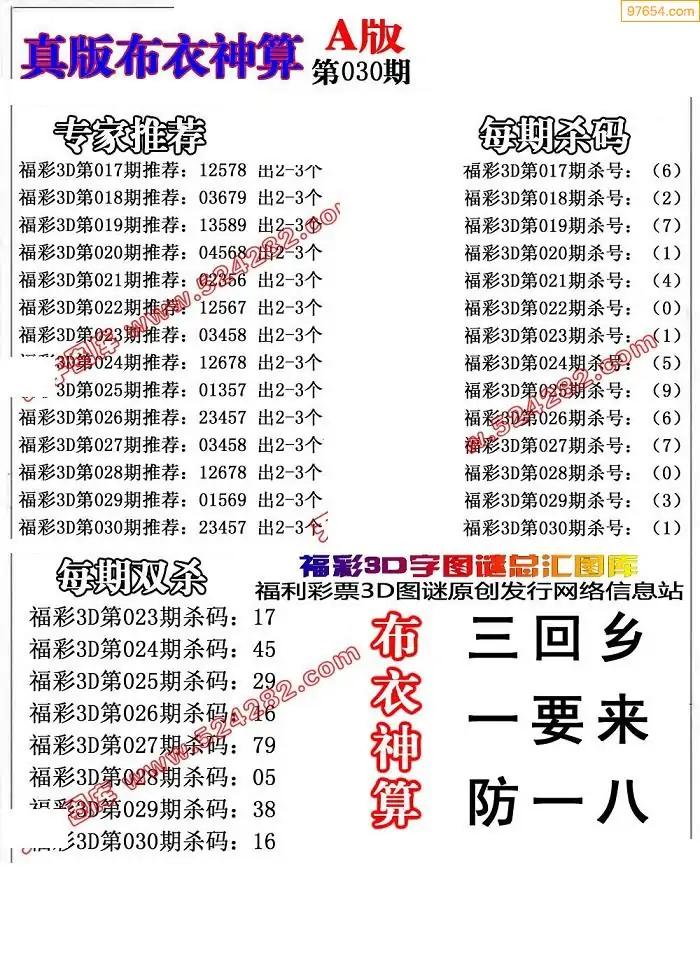 030期真精布衣3d正版布衣123456(原创)