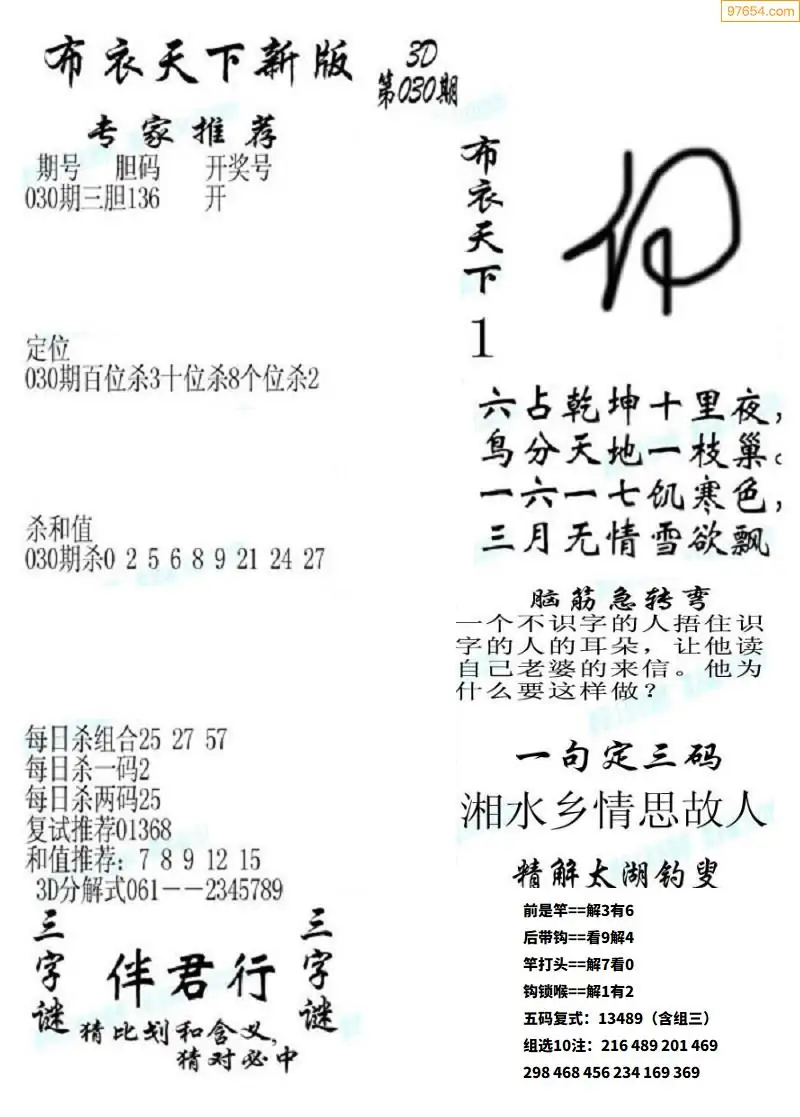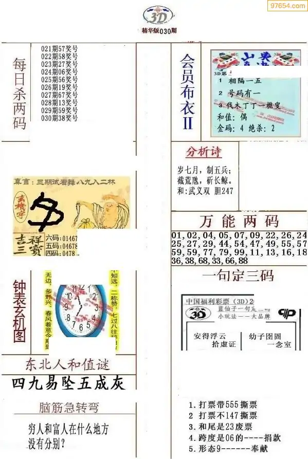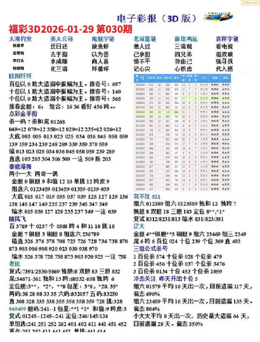 (3)2026030期3D预测总汇全图_福彩3d图谜字谜总汇