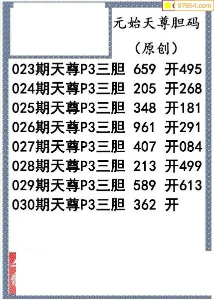 26030期元始天尊排列3胆码图
