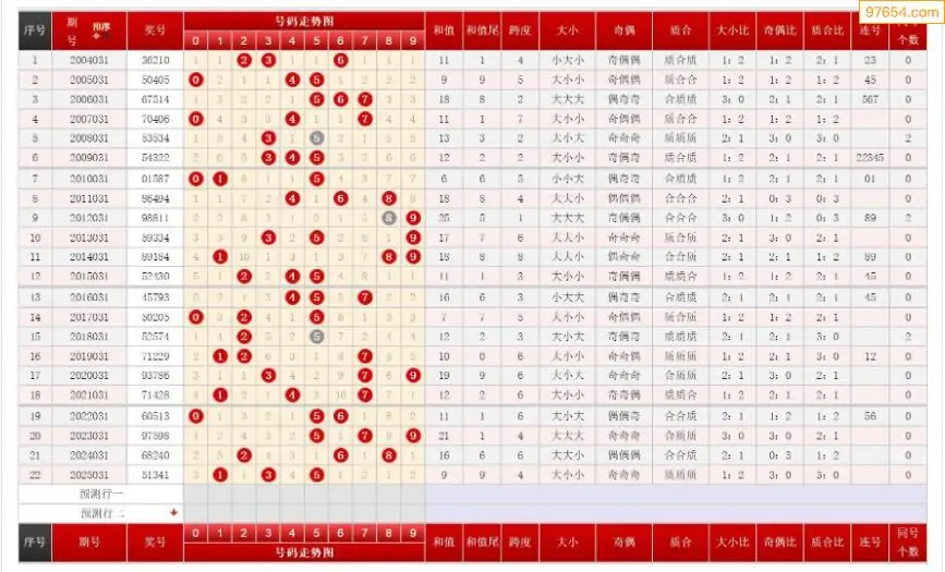 031期排列三历史号码对比图+数据走势分析