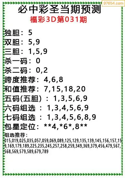 031期97654本站收集胆码出号预测