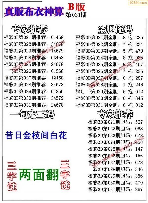 (3)2026030期3D预测总汇全图_福彩3d图谜字谜总汇