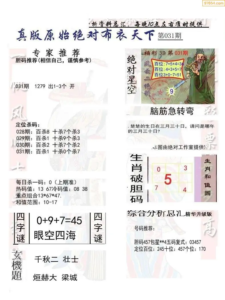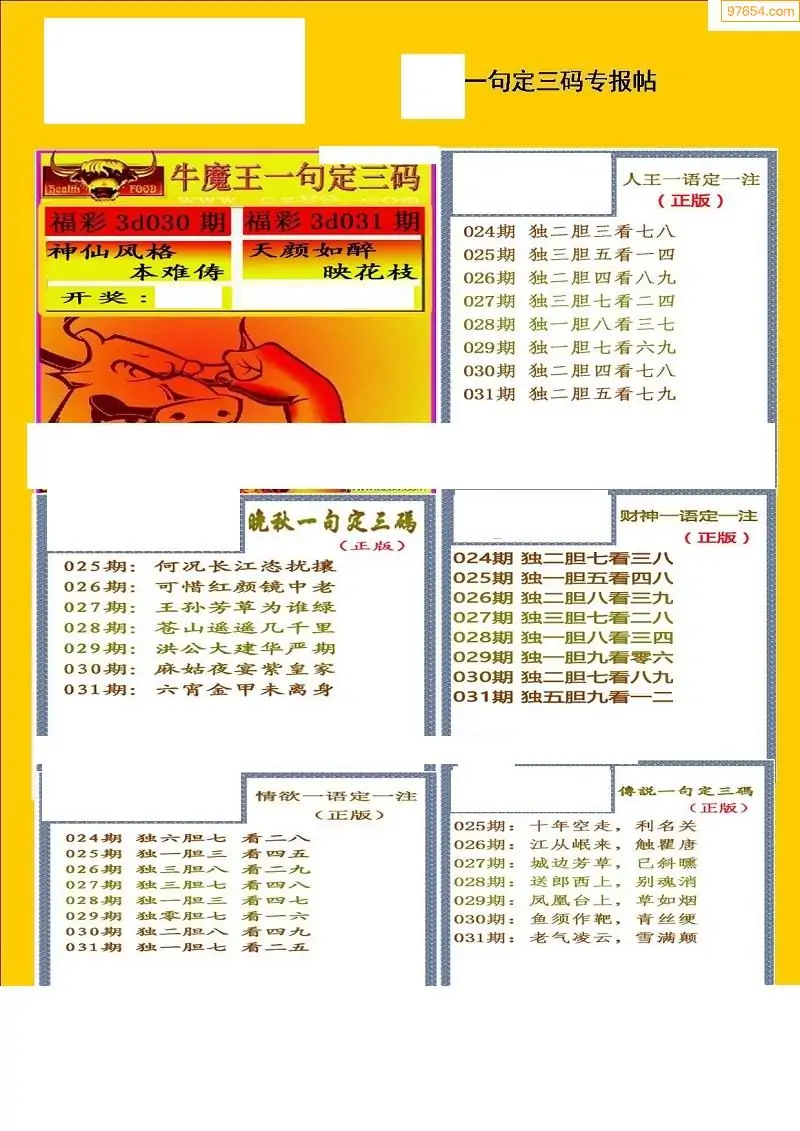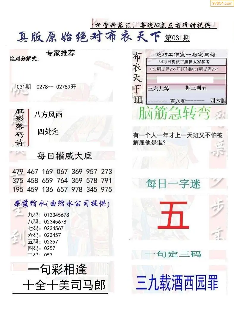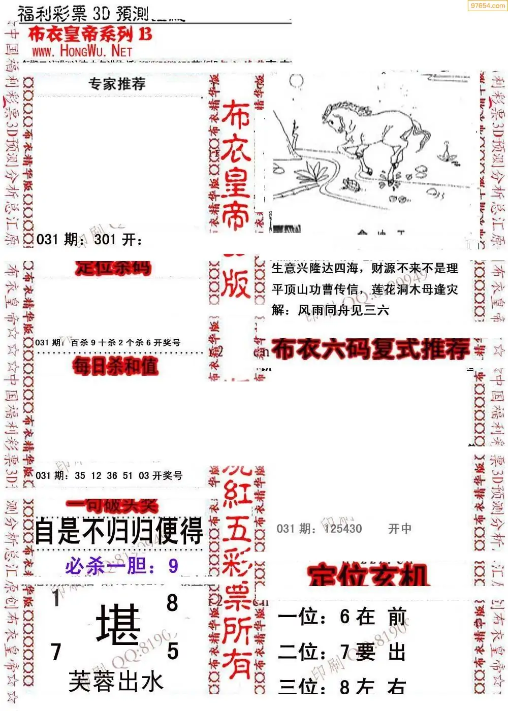 (2)26年031期本期3d图迷汇总_福彩3D图谜总汇图